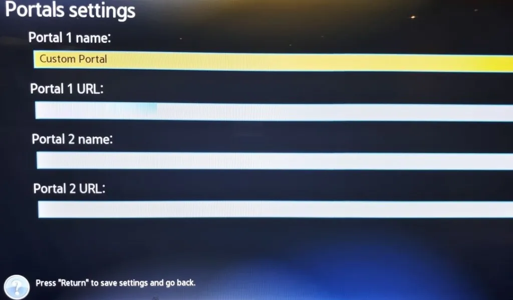 You should see the Portal Settings page like the earlier picture. In Portal 1 URL type the desired name for the main portal and in Portal URL input the URL you have been provided by the IPTV Provider you are subscribed to. Once done, press the Return button on the remote controller. Going back to the preceding page, Restart Portal must be selected. Next time you start the app, IPTV portal should load with bouquets and details of IPTV service ready to be used.